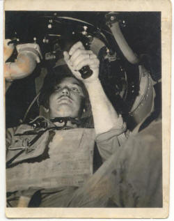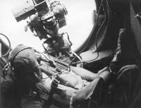 Here Bud is at his station at the left blister of the B-29. His pedestal gun
