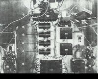 This is a display in our museum of part of the Remote Control Turret System that was used in the Boeing B-29 Superfortress. This mockup is of the upper gunner or Central Fire Control (CFC) gunner. The sight is the ring type and under it is the pedestal seat or Barbers Chair as it was sometimes called. On the wall are many of the typical components of the RCT system. There are two Amplidyne motor generators, one Dynamotor, servo amplifier, Navigator's hand set and the control box. The missing component is the computer which is shown below.