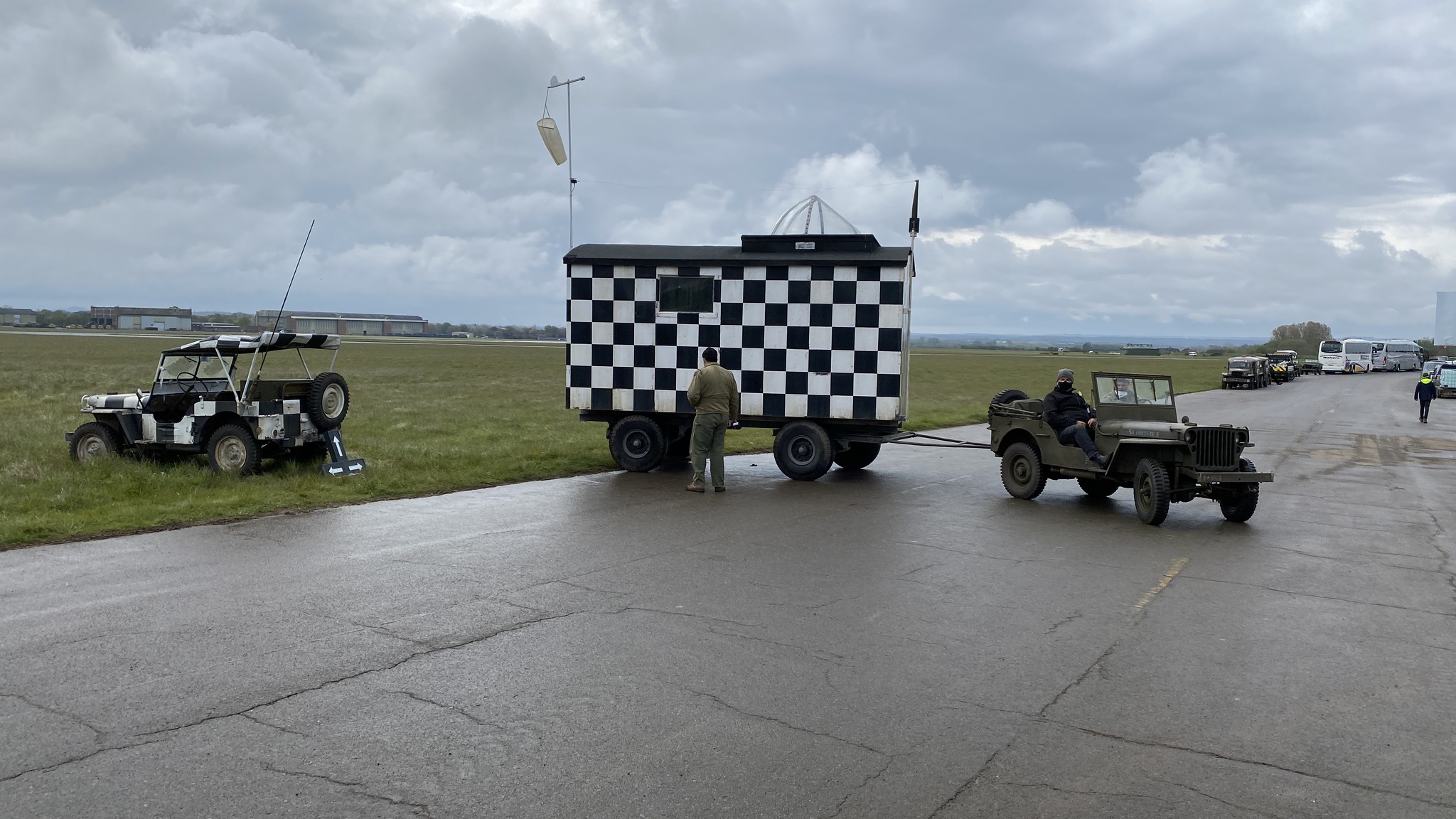 Runway control Jeep and trailer. The aircraft radios set up in the back of the runway control Jeep. Well done Chris!